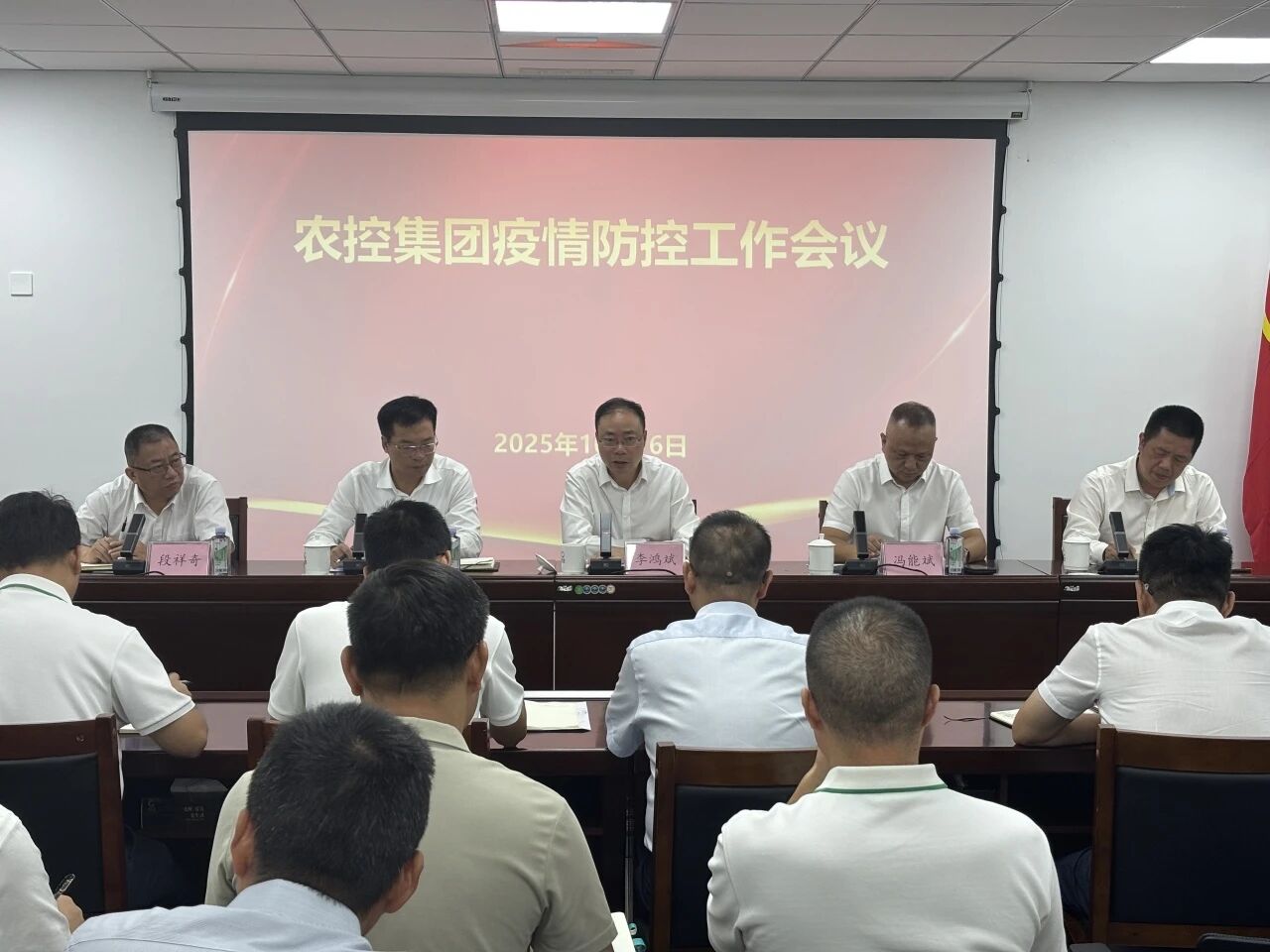 为深入学习贯彻习近平总书记关于疫情防控工作的重要讲话和重要指示精神,认真落实省、市近期关于疫情防控的最新部署要求,切实做好基孔肯雅热防控工作,2025年10月16日上午,珠海农控集团召开疫情防控工作会议,对集团疫情防控工作进行再动员、再部署、再落实。集团党委书记、董事长李鸿斌,党委副书记、总经理冯能斌出席会议并讲话,副总经理祝杰主持会议,副总经理王春锦出席会议。